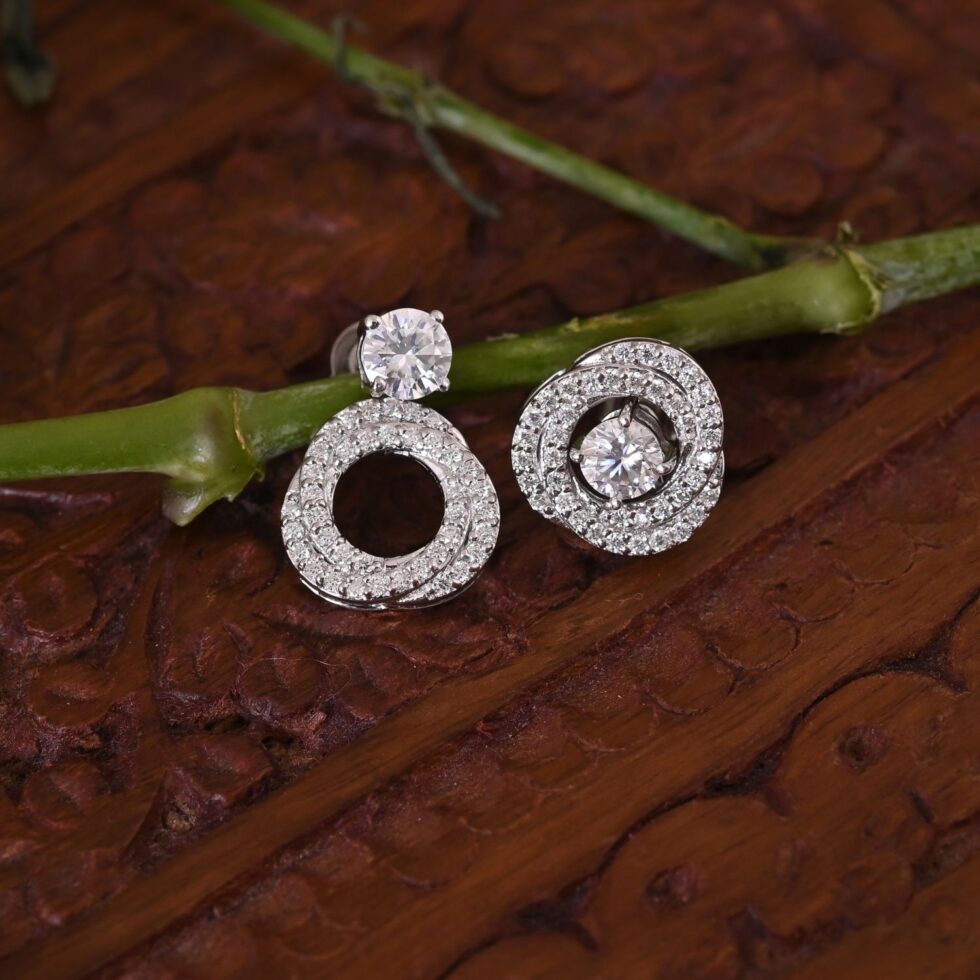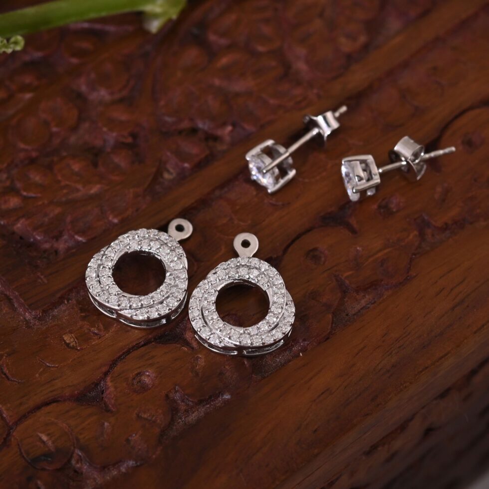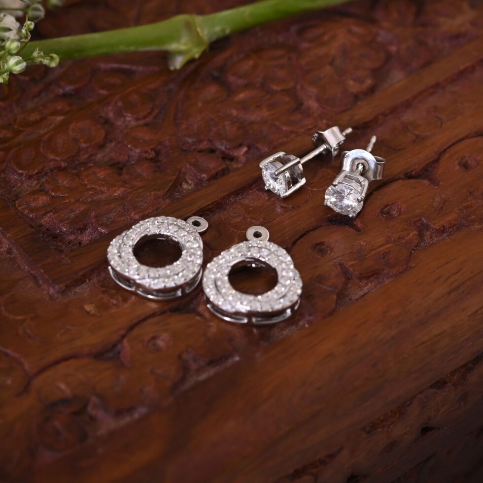 This earring has a unique design and can be worn in three different ways – as a solitaire, with hanging jackets, or without. It’s a must-have accessory.
