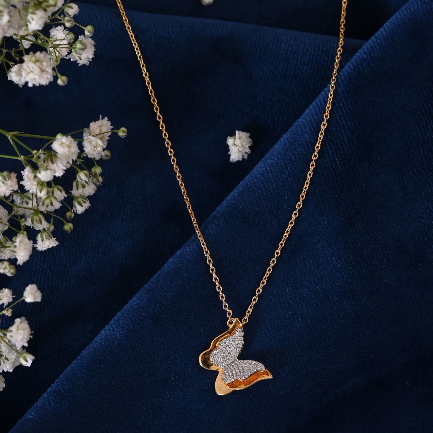 This pendant is designed with the inspiration a butterfly flying. It’s a 3D motif of flying butterfly.