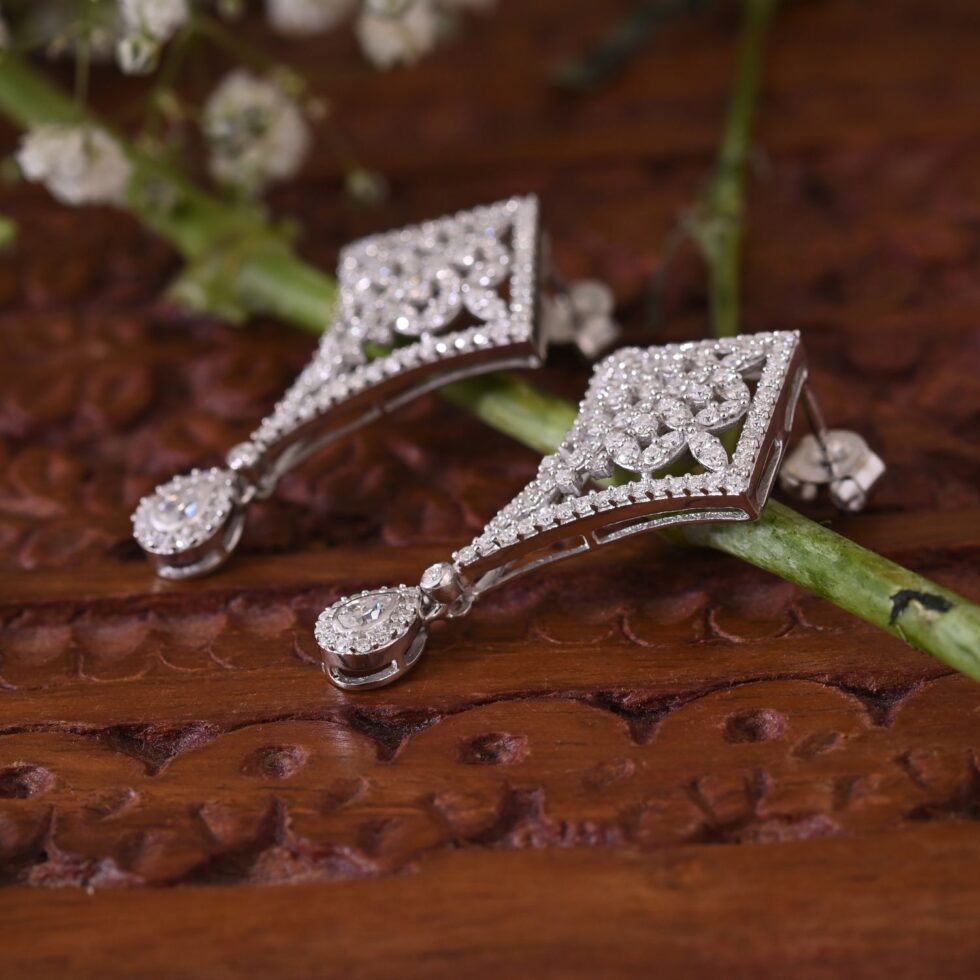 This Silver Drizzle Drop Earring is handcrafted with love, just for YOU. The simple yet chic earring has the shiniest moissanites ever, nestled comfortably in a circular silver frame. The perfect partner for a peerless beauty.