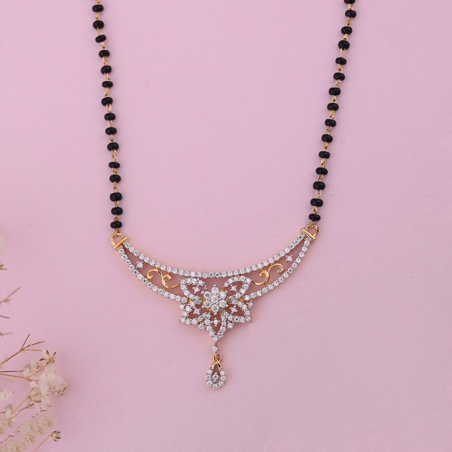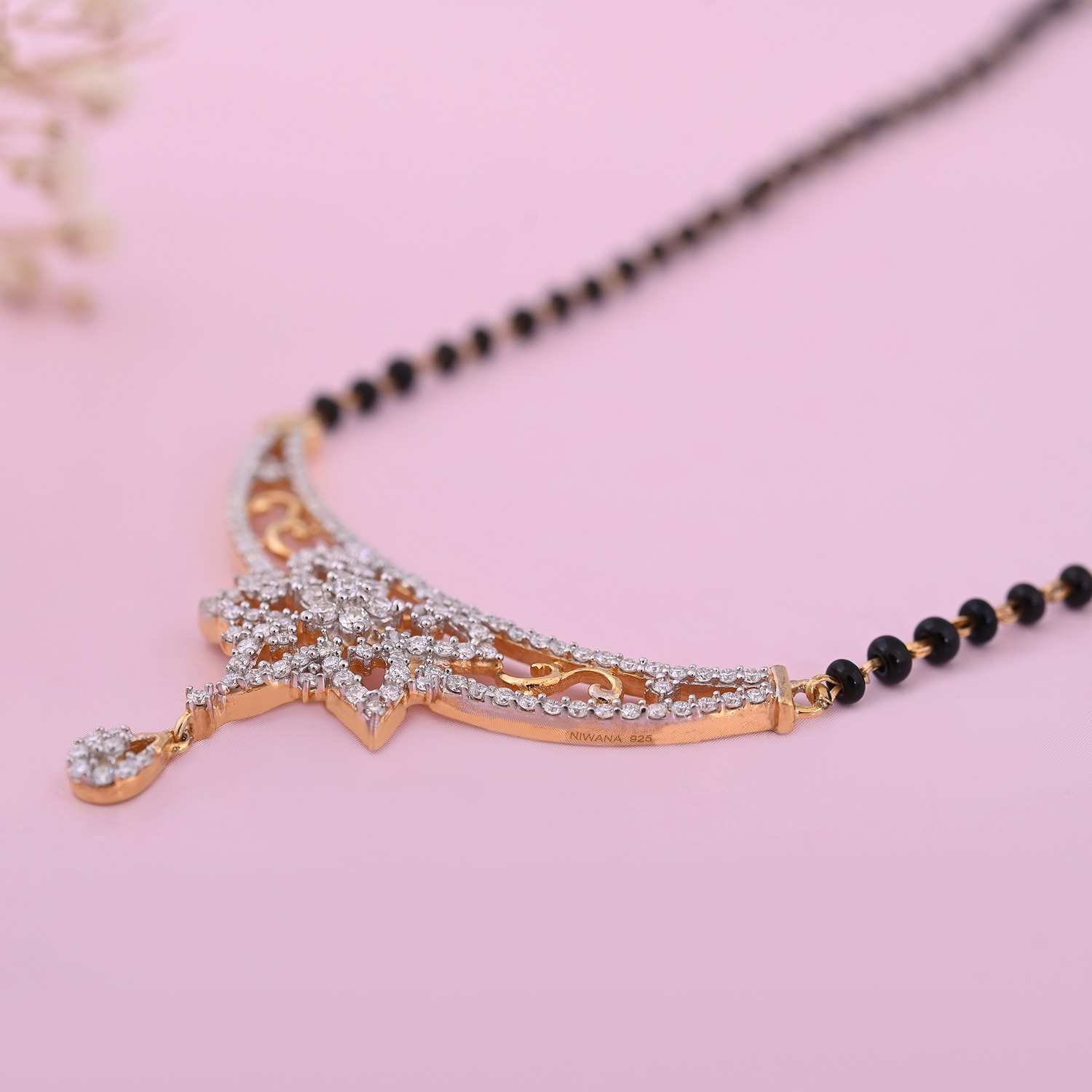 It’s a silver pendant with a beautiful design. The intricate patterns and sparkling moissanite make it look so elegant and eye-catching. The beads add such a lovely touch, and the moissanites gives it a dazzling spark.