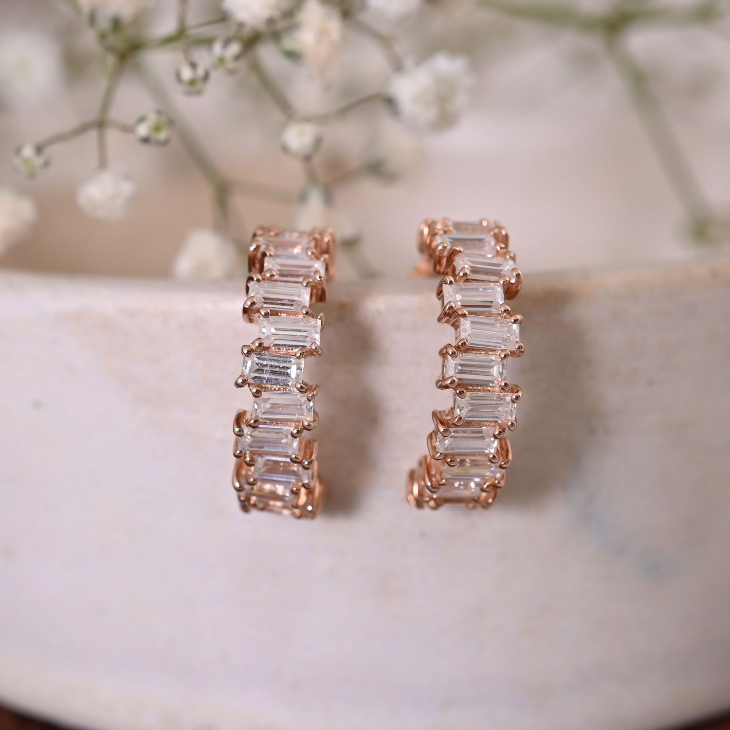 Half Hoop Baguette Earring