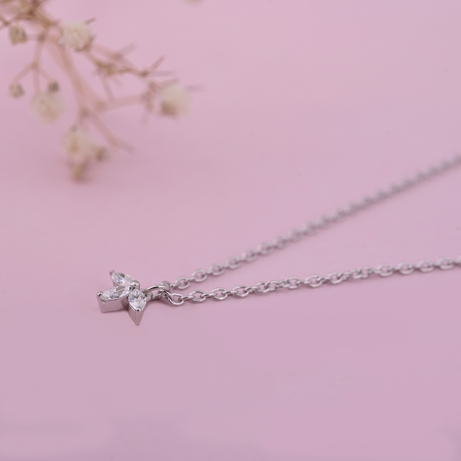 Marquise cut pendant has a design with 3 marquise cut moissanite studded.