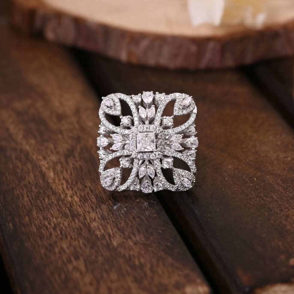 The ring is stunningly elegant and sparkly, adding a glamorous touch.