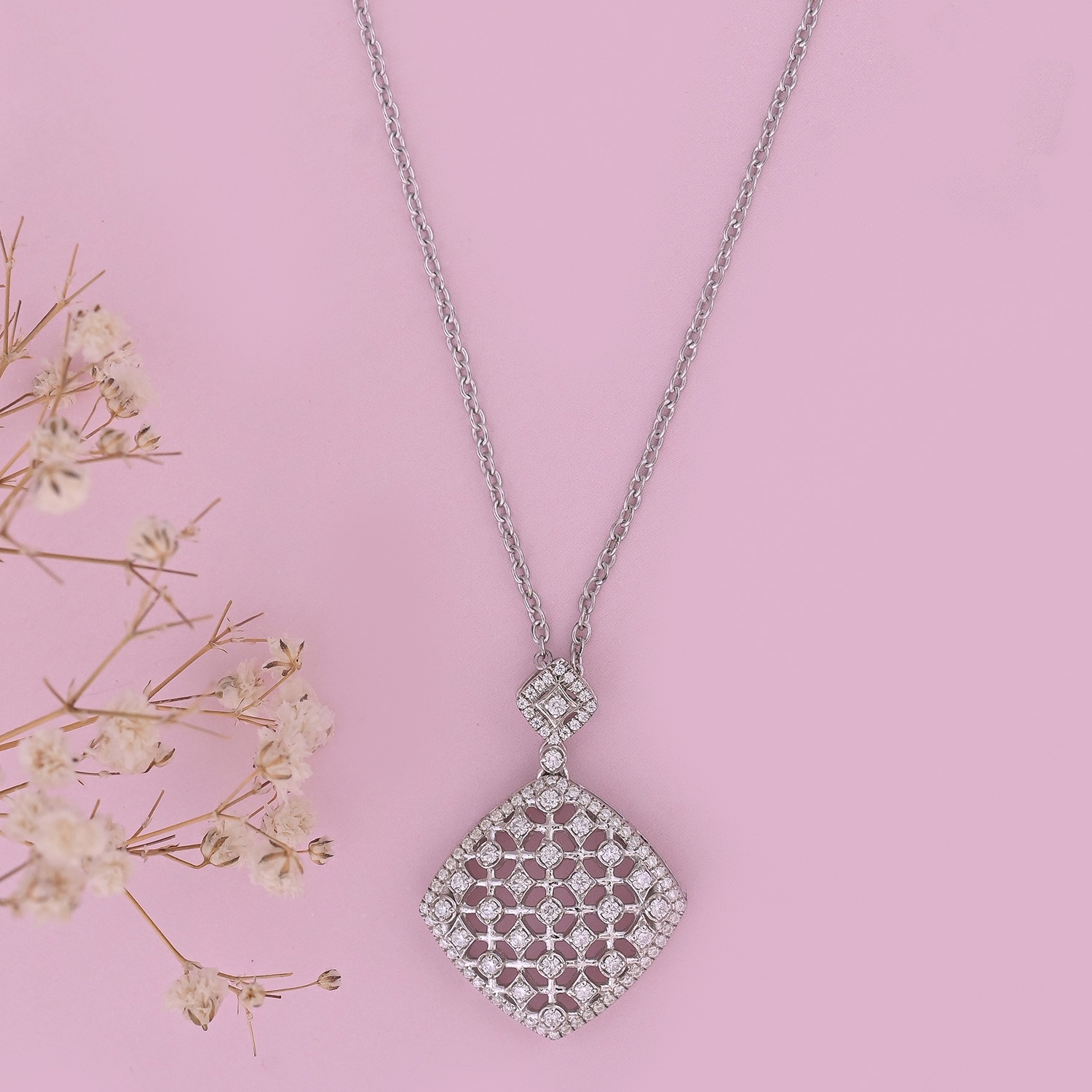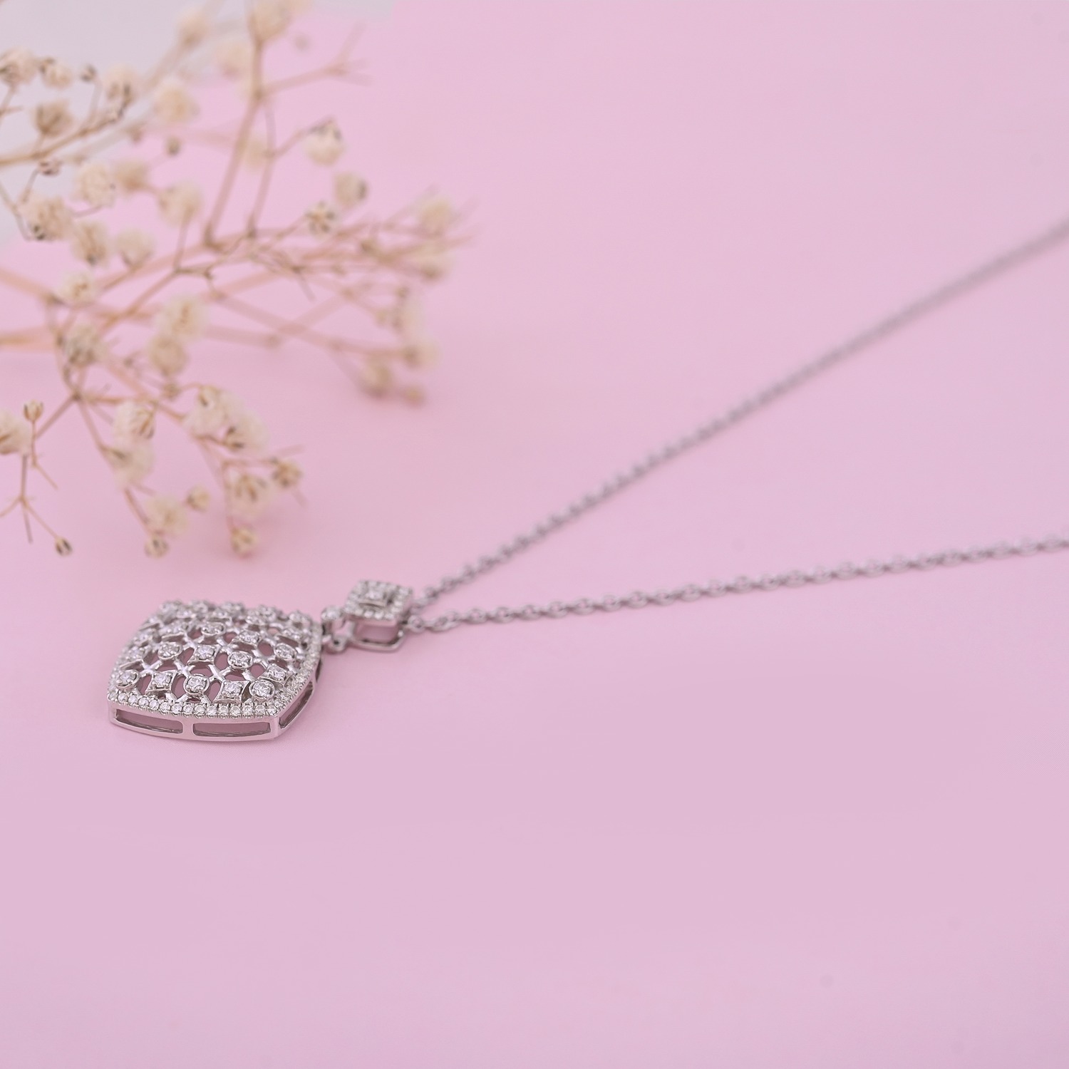 This pendant features a unique design with intricate details. It is a stunning piece of jewelry that will undoubtedly make a statement and add an elegant touch to any outfit.
