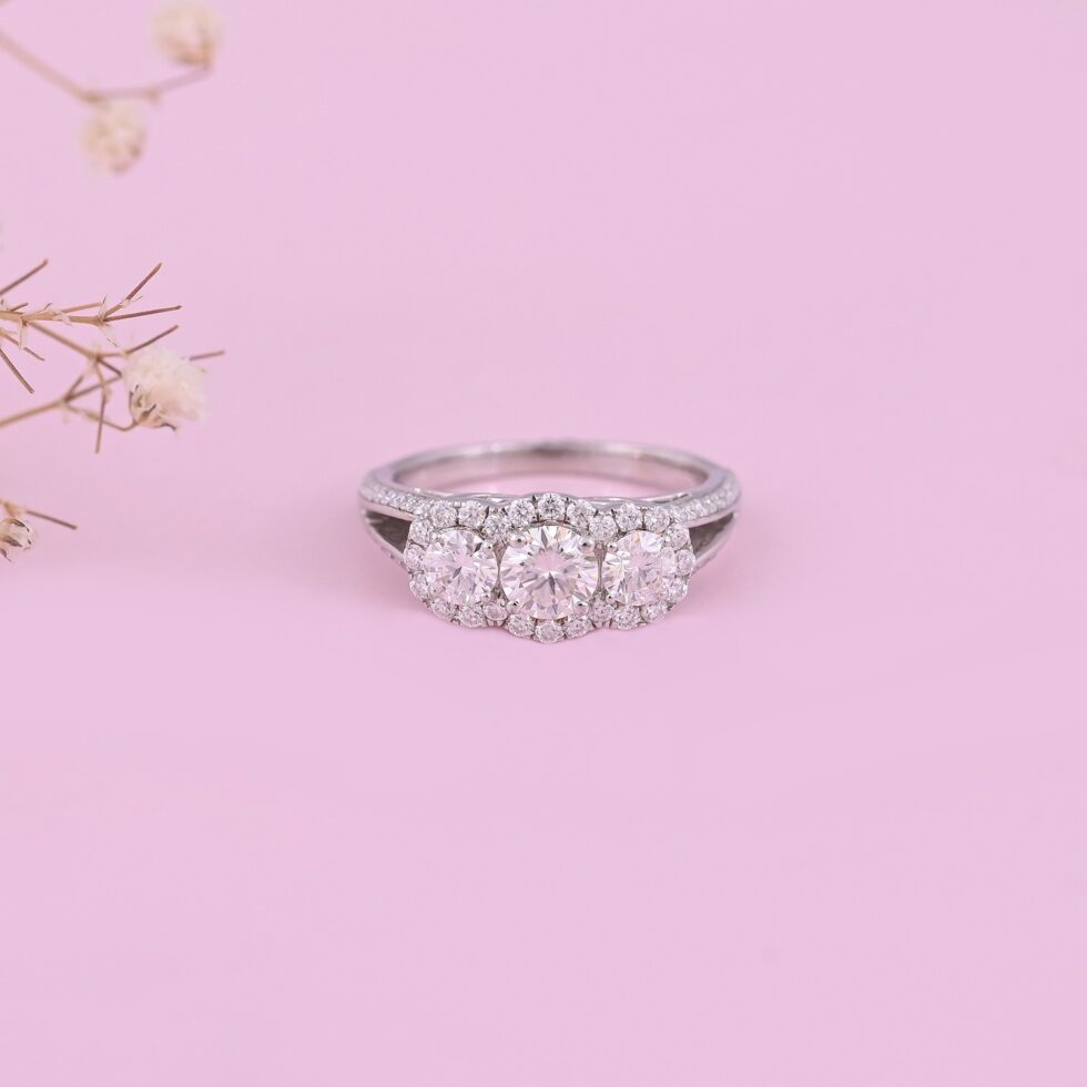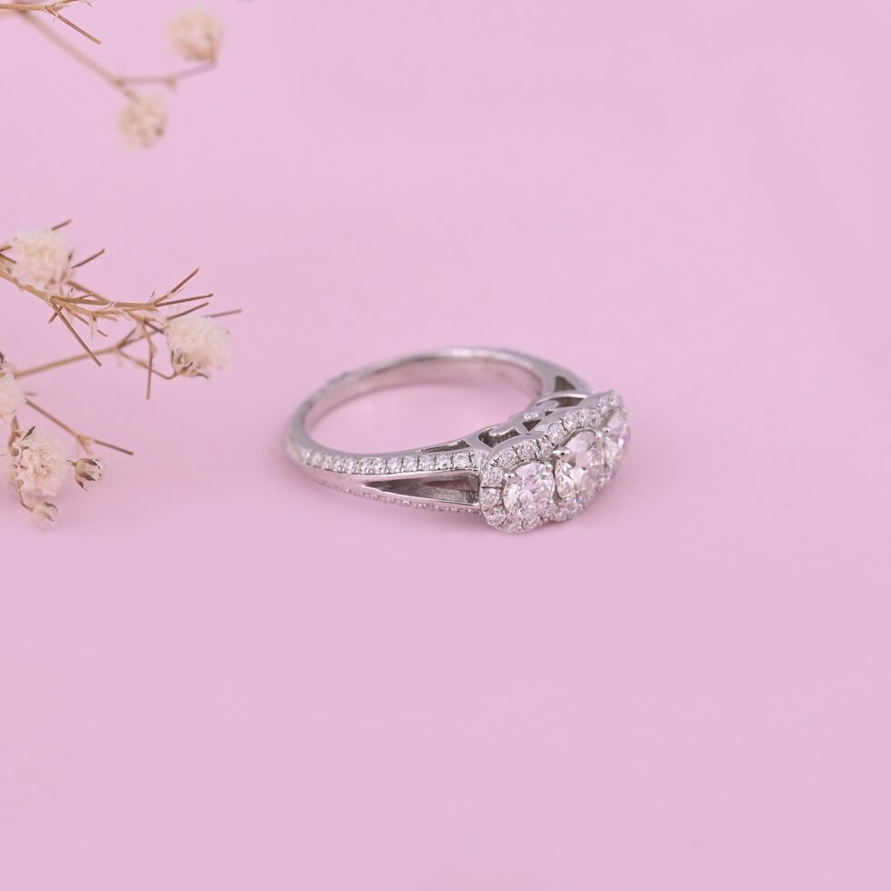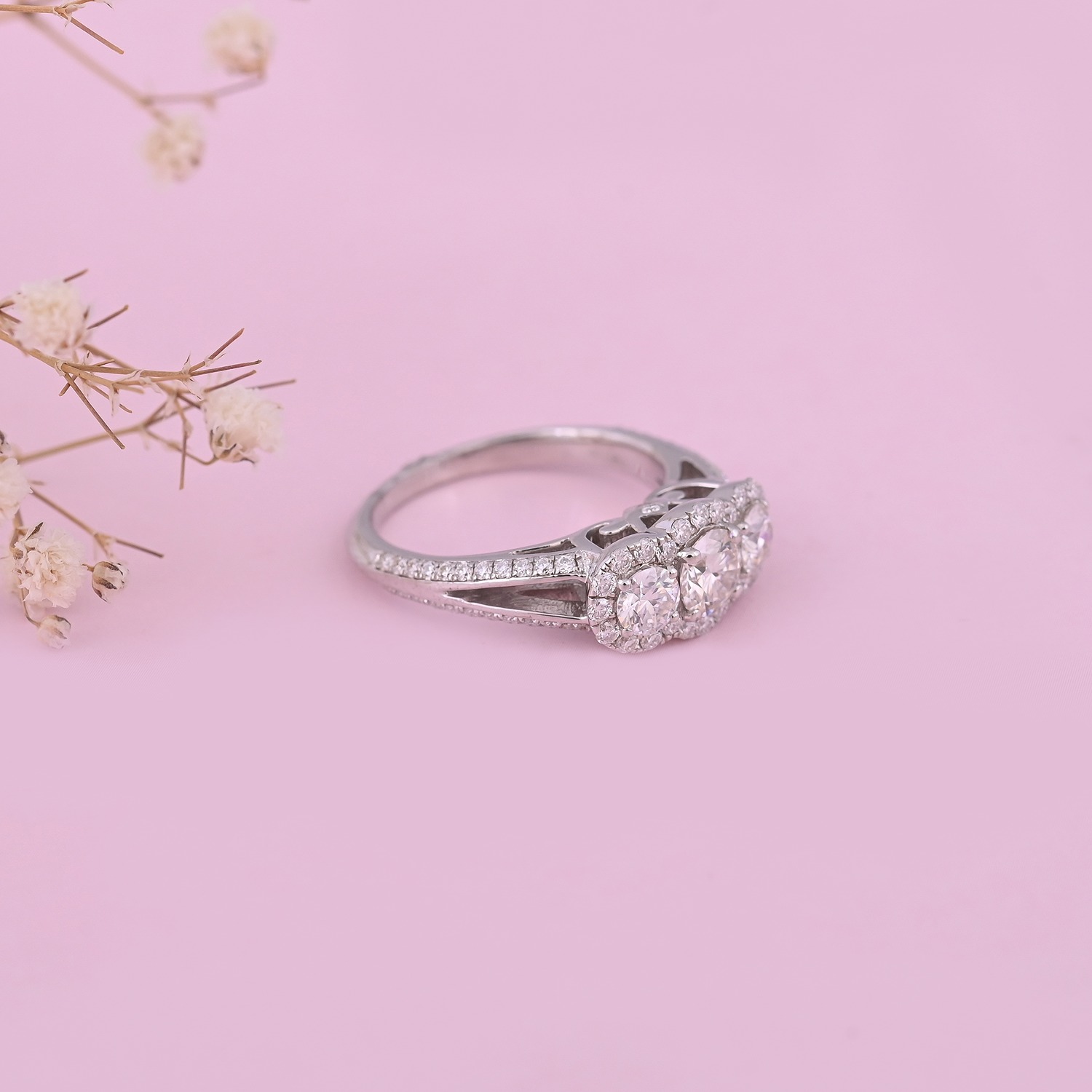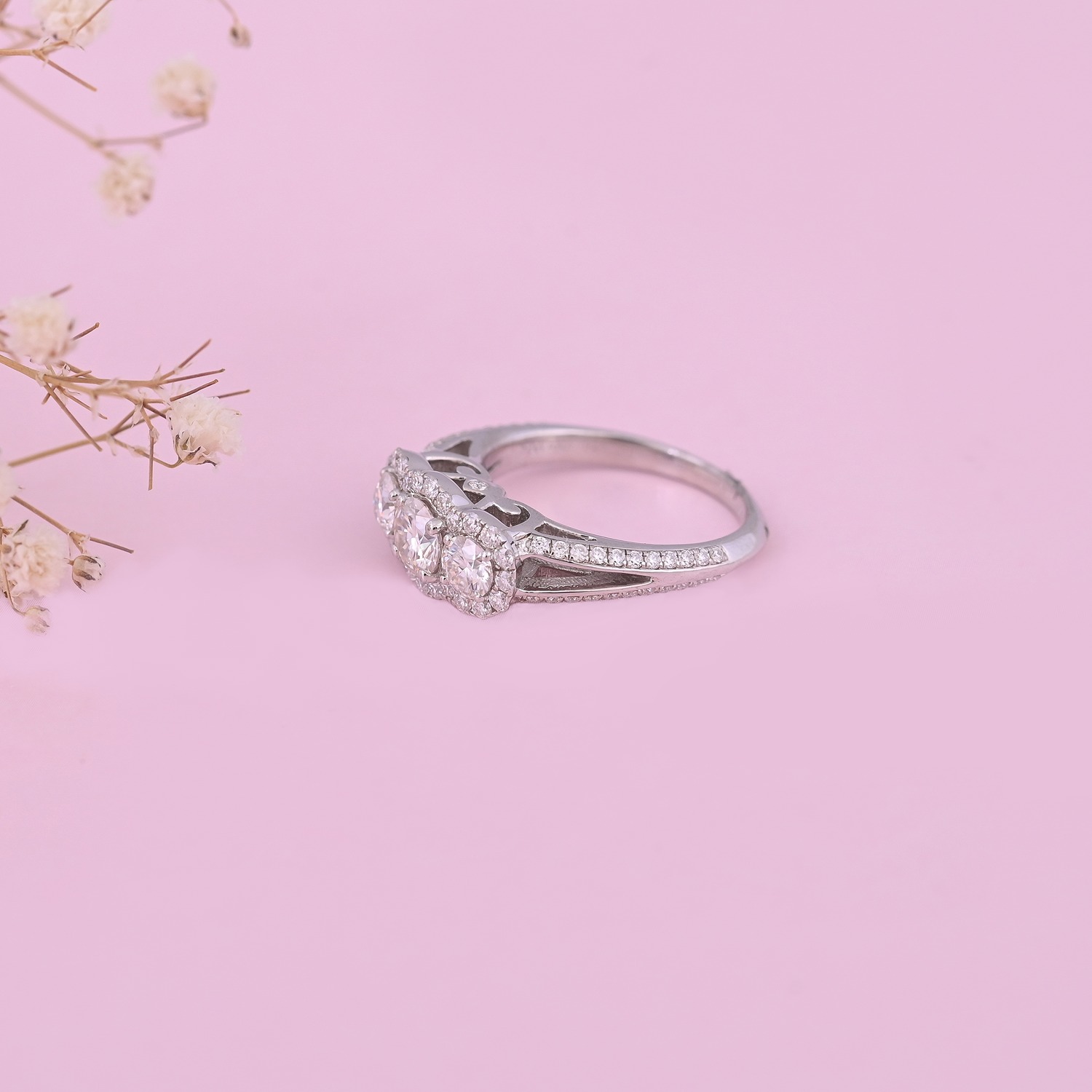 This is a perfect engagement ring for your love. This ring has three moissanite stones studded perfectly in the center.